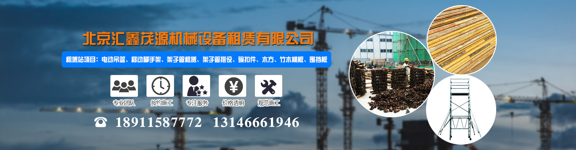 租赁站项目:电动吊篮、移动脚手架、架子管租赁、架子管搭设、碗扣件、木方、竹木模板、围挡板。