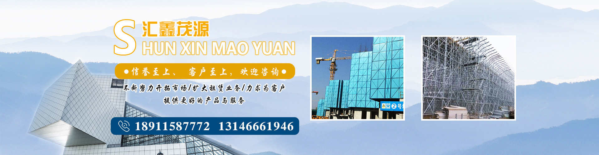 业务范围:专业从事移动脚手架、架子管租赁、工程施工搭设、脚手架搭建搭拆、大量收购架子管、扣件,北京顺鑫茂源机械设备租赁有限公司涉足脚手架行业多年,与京城及外省市多家建筑公司、装饰公司、脚手架租赁具有长期合作关系。凭借其锐意进取的精神和科学严谨的管理,在所涉行业建树颇丰,已成为国内行业享有美誉的知名公司。   本公司租赁各种门式脚手架及钢管脚手架,负责搭设拆除及运输一条龙服务。有一批专业的搭设队伍,资质证照齐全,承接内外墙脚手架、满堂红脚手架、高空双排脚手架、看台架、广告架、舞台架的搭设业务。本站为施工单位提供技术性搭设及拆除方案,车辆运输,精确的材料预算。客户的满意是我们的服务目标,欢迎各位朋友来站咨询洽谈!