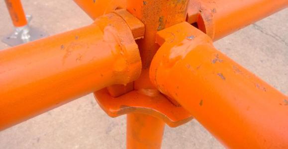 轮扣(直插)式脚手架是一种具有自锁功能的直插式新型钢管脚手架,参照住房和城乡建设部颁发的《建筑施工承插型盘扣式钢管支架技术规程》JGJ231-2010标准生产,主要构件为立杆和横杆,盘扣节点结构合理,立杆轴向传力,使脚手架整体在三维空间结构强度高、整体稳定性好,并具有可靠的自锁功能,能提高脚手架的整体稳定强度,能较好的满足施工的需要。具有拼拆迅速、省力,结构简单、稳定可靠,通用性强,承载力大,不易丢失,便于管理,易于运输等特点。